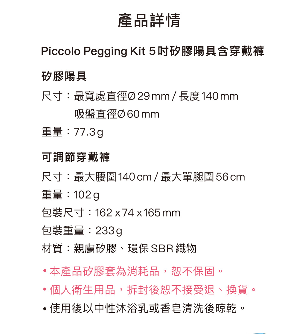 ✔︎ 產品名稱:Piccolo 5吋矽膠陽具含穿戴褲